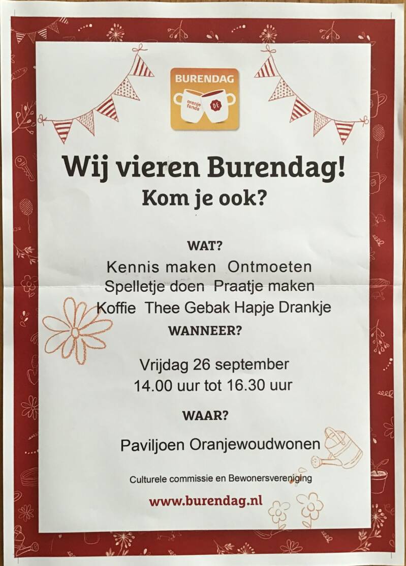 vraag buren goed op elkaars woning te letten als men weggaat